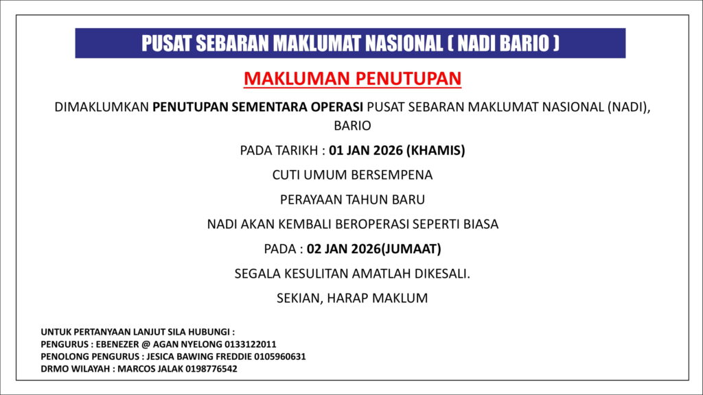 MAKLUMAN PENUTUPAN NADI BARIO 1 JAN 2026